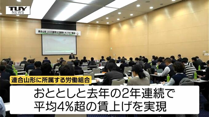 連合山形によりますと、連合山形に所属する労働組合ではおととしと去年の2年連続で平均4パーセントを超える賃上げを実現したということです。