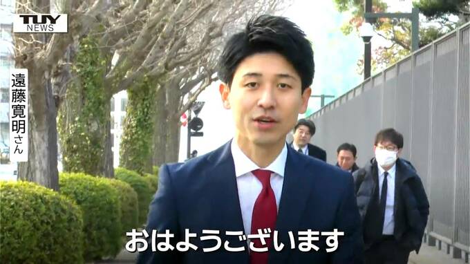 午前8時前、県1区で初当選した遠藤寛明さんが緊張した面持ちで姿を現しました。そして午前8時の開門。遠藤さんが初登院しました。