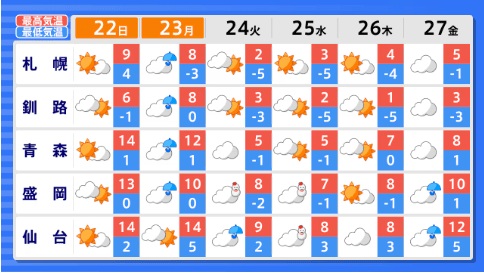 【早期天候情報】東北地方では2月25日頃~「この時期としては10年に1度程度」の著しい高温となる可能性 気象庁発表 全国の天気を地方ごとに 2026年2月20日(金) 15:00 国内 ■全国の天気を地方ごとに(画像) 画像はTBS NEWS DIG Powered by JNNより 画像ありの記事を最初から https://newsdig.tbs.co.jp/articles/-/2481242?display=1