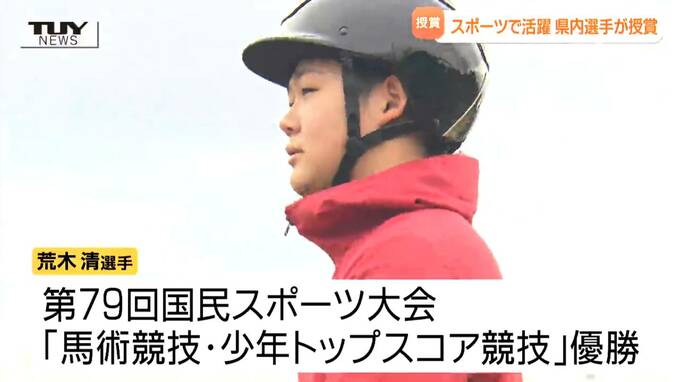 上山明新館高校の荒木清選手は今年度の国民スポーツ大会で馬術・少年トップスコア競技で優勝しました。