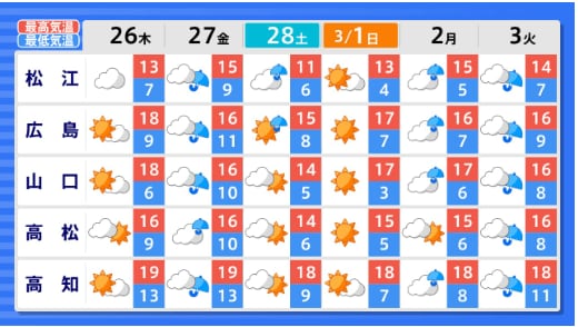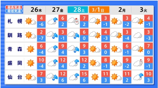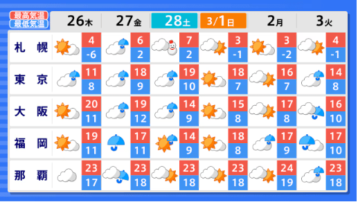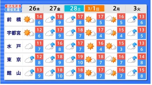 【2週間気温予報】北・東・西日本の気温は向こう10日間程度は高い日が多い予報 向こう1週間程度はかなり高い日もある見込み 農作物の管理などに注意 全国の天気を画像で 気象庁 2026年2月24日(火) 15:25 国内 ■全国の天気を地方ごとに(画像) 画像はTBS NEWS DIG Powered by JNNより 画像ありの記事を最初から https://newsdig.tbs.co.jp/articles/-/2487146?display=1