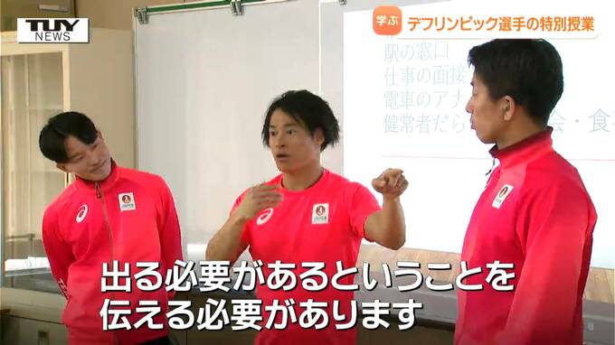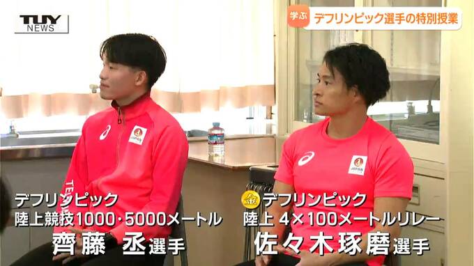 講師として招かれたのは去年11月に東京で開かれたデフリンピックの陸上・4×100メートルリレーで金メダルを獲得した佐々木琢磨選手ら5人のアスリートです。