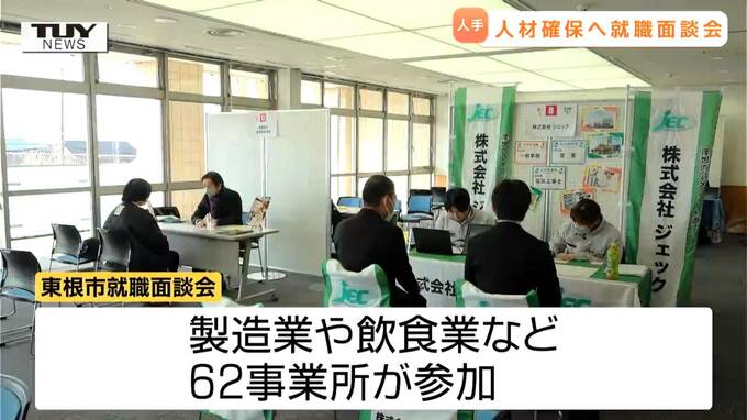 市が協力し、ハローワークが運営したこの面談会は去年に引き続き2回目の開催です。東根市に関わる製造業や飲食業などがブースを開き、去年を上回る62の事業所が参加しました。