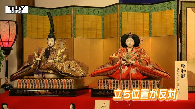 佐藤友美アナウンサー「こちらは明治と昭和の雛飾り。同じお雛様でも時代によって顔や髪飾り、色々違いがあります。よく見るとお内裏様とお雛様の立ち位置が反対ですね。」