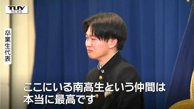 卒業生代表「仲間がいるからこそ1人では見られない景色を沢山見ることができた。ここにいる南高生という仲間は本当に最高です。」