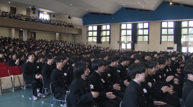 「答辞。空はコバルト大地は招く、この歌詞の如く冬を越え、空は澄んだコバルト色に輝き、雪解けの大地が姿を現しました。新たな一歩へと私達を招くこの今日の良き日、私たち渋谷学年は、きょう山形南高等学校を卒業します。