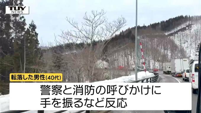 現場となった鶴岡市田麦俣の国道112号は男性の救助作業により、午前6時40分からおよそ2時間にわたり片側交互通行となりました。