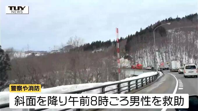 警察や消防が斜面を降り午前8時ごろ男性を救助しました。