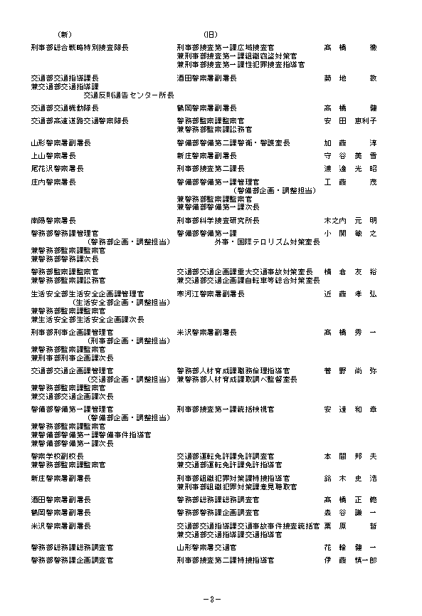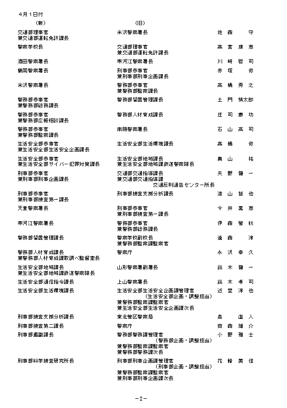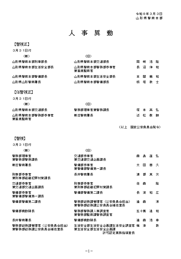 【名簿掲載】山形県警察 人事異動情報2026 地元採用のトップ・刑事部長に岡崎浩隆交通部長 女性署長がはじめて誕生 あの人はどこに?