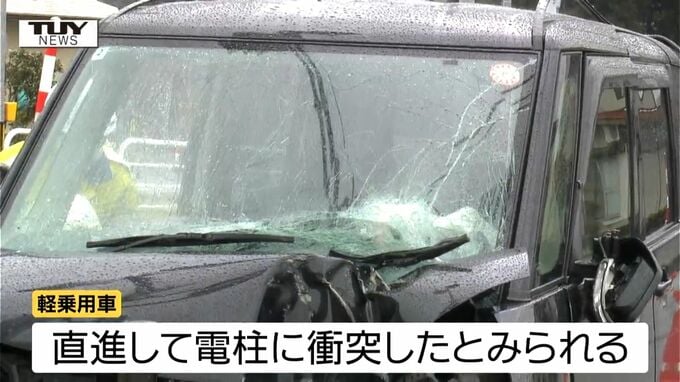 軽乗用車は前の部分が大きく壊れていて、直進して電柱に衝突したとみられています。