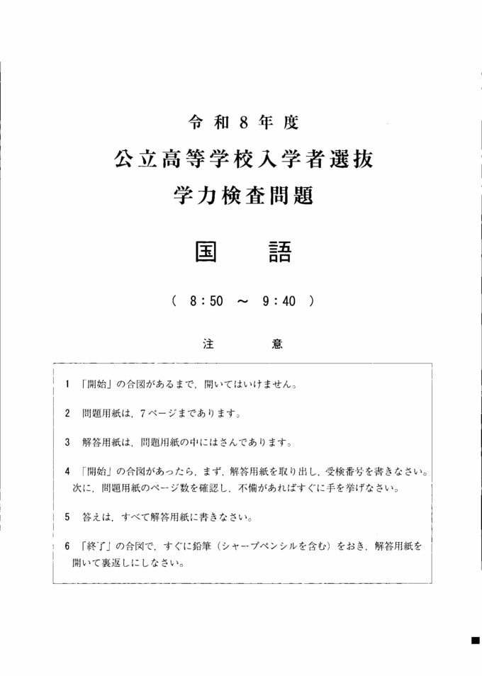【国語の試験問題と解答】2026年度入学 山形県公立高校入試(一般)