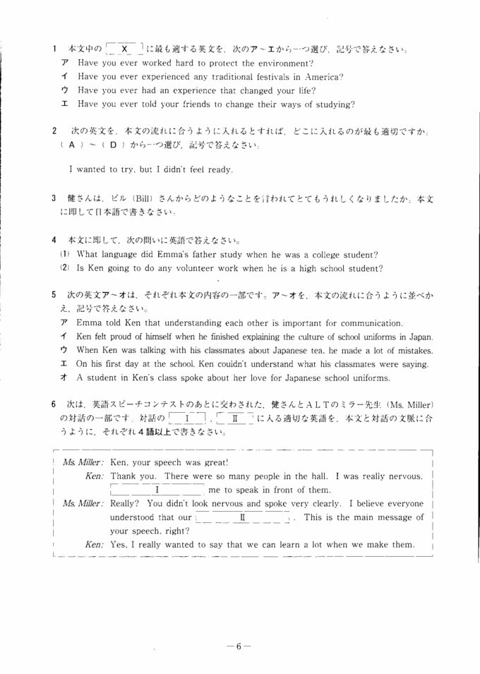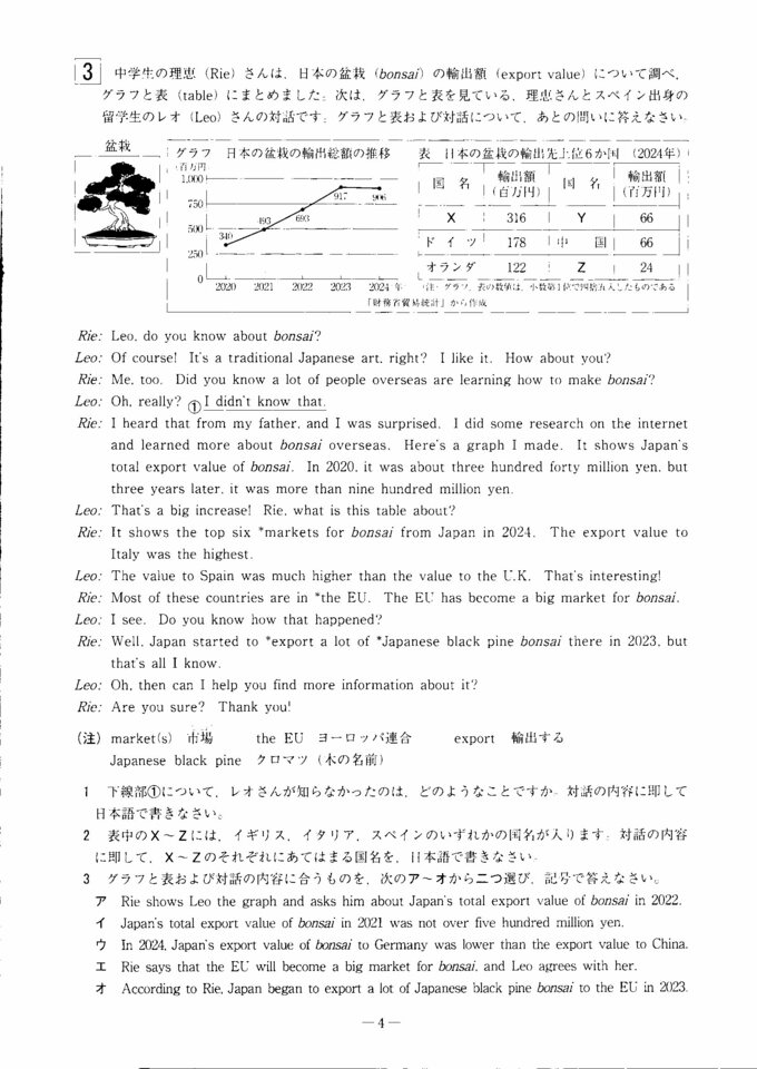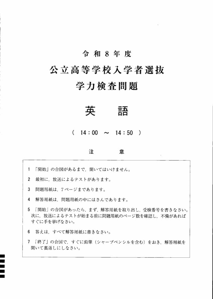 【英語の試験問題と解答】2026年度入学 山形県公立高校入試(一般) 英語リスニングテスト内容あり