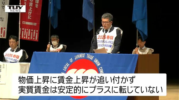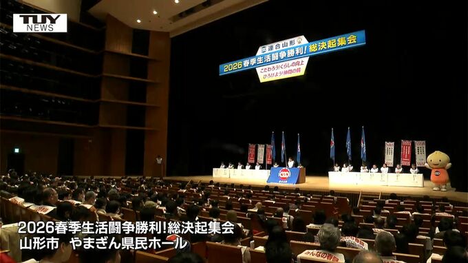連合山形はきょう、春闘での「6%以上の賃上げ」実現に向け、山形市で総決起集会を開きました。