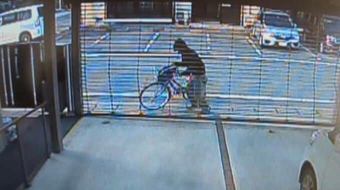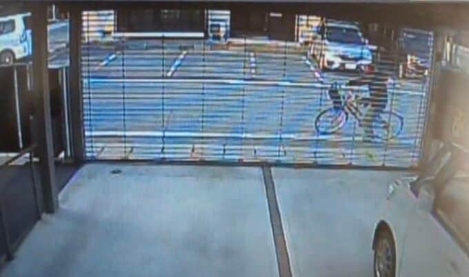 当時の状況を改めて見てみると、自転車はフラフラと不自然な動きを見せたあと、突然左側に傾き、シャッターに倒れ込むような様子でした。ある程度スピードが出ていた可能性もあります。