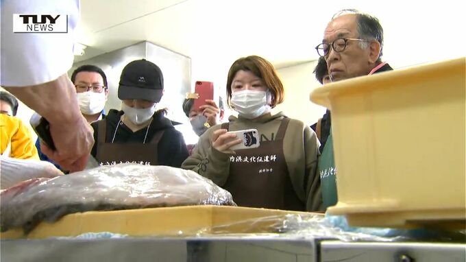 アンコウがさばかれるのを目の前で初めて見るという伝道師もいる中、参加者たちは、動画やメモを取りながら今が旬のアンコウの調理法を学んでいました。