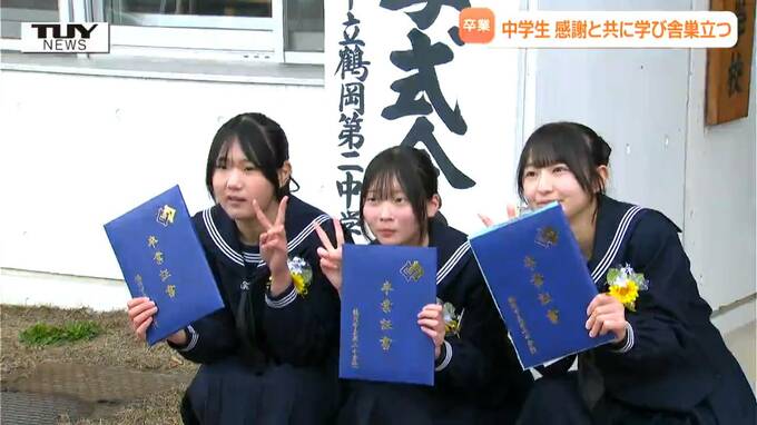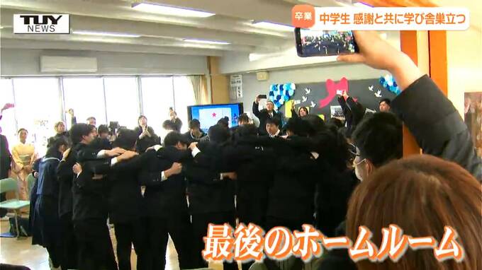 ホームルームのあと、卒業生は友人や家族などと写真を撮り中学校最後の思い出を作っていました。