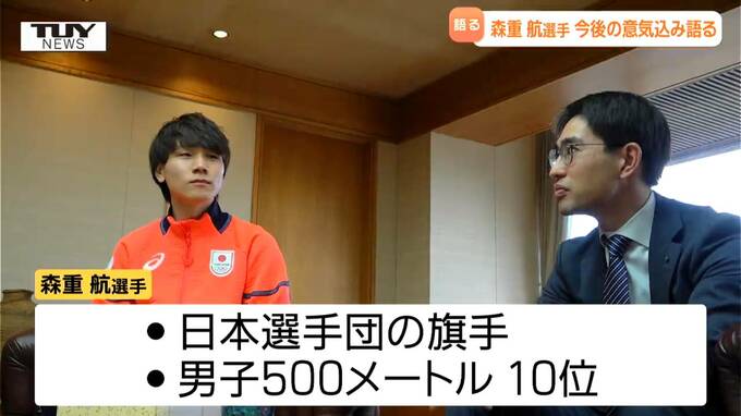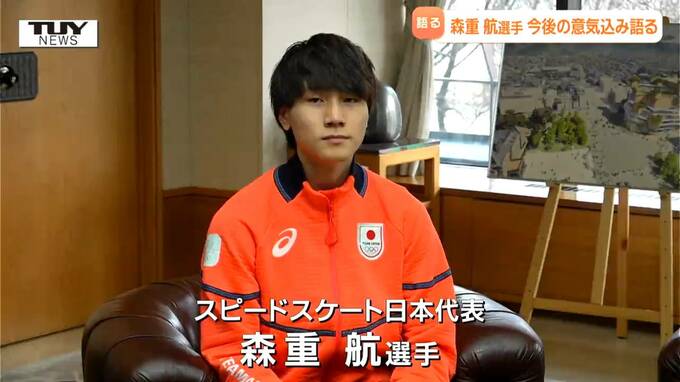 スピードスケート日本代表の森重航選手がきょう、山形市役所を訪れ、オリンピック™での応援への感謝と今後の意気込みを語りました。