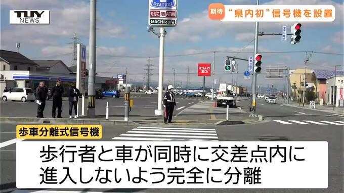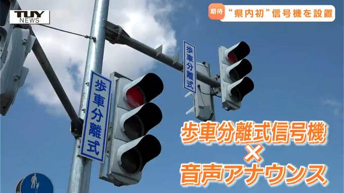 きょう、山形県天童市内の交差点で、県内初となる音声付きの信号機の運用が始まりました。これにより、歩行者の巻き込み事故の防止に期待がかかります。