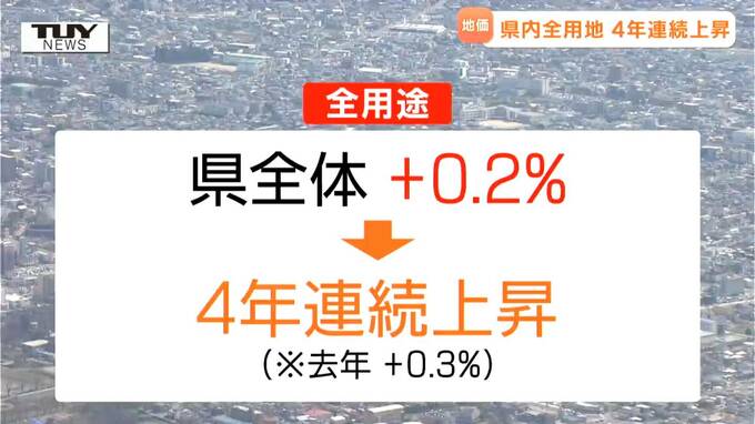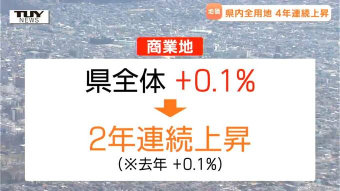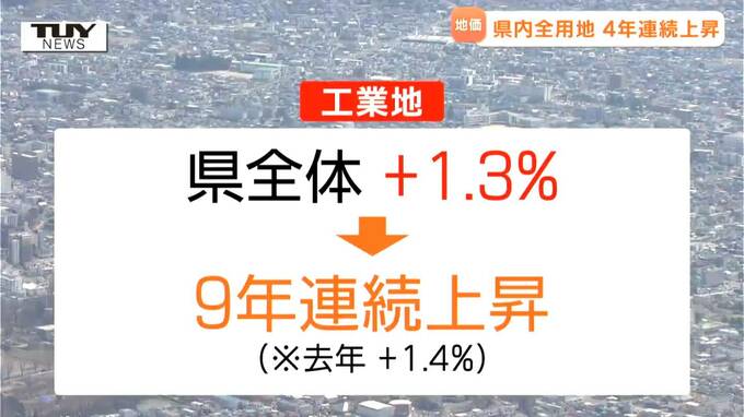 また、32年ぶりに上昇に転じた去年に続き、商業地は0.1%の上昇。工業地は、1.3%の上昇で、9年連続で上昇しました。