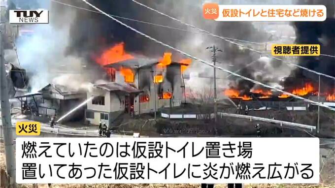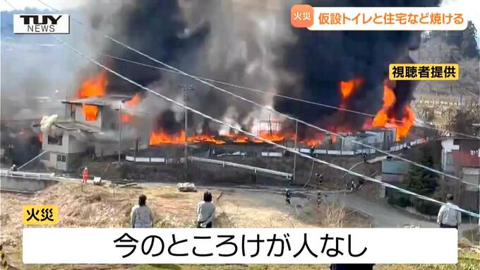 【現場】仮設トイレをバーナーで炙って火災に 目的はプラスチックの色再生か 周囲は騒然...大江町で大量の仮設トイレと住宅が焼ける 黒煙は山形市からも確認(山形) 2026年3月18日(水) 20:27 国内 黒煙は山形市の市街地からも(画像)