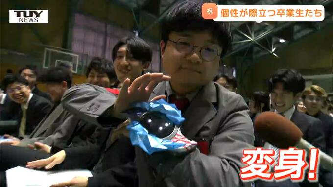 宇宙に飛び出す勢いの卒業生たち。学生生活をちょっと懐かしみながらも、新生活への期待に胸を膨らませていました。