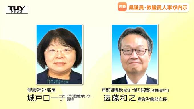 健康福祉部長に、城戸口一子こども医療療育センター副所長。産業労働部長兼洋上風力推進監産業振興担当に、遠藤和之産業労働部次長などが起用されました。