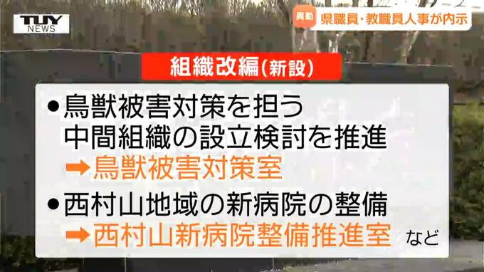 また、組織改編ではクマの大量出没を受け、鳥獣被害対策を担う中間組織の設立に向けた検討を進めるために、みどり自然課に「鳥獣被害対策室」が新設されます。