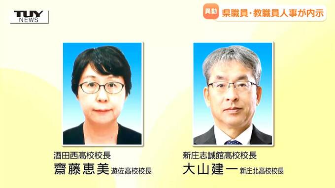 酒田西高校の校長に、齋藤恵美遊佐高校校長。また、ことし4月に開校する新庄志誠館高校の校長には、大山建一新庄北高校校長が起用されます。