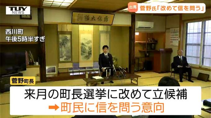 菅野町長はさきほど会見を開き、任期満了で行われる来月の町長選挙に改めて立候補し、町民に信を問う意向であることを明らかにしました。