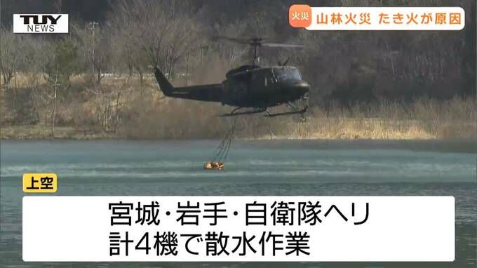 上空から宮城・岩手から応援に駆けつけた消防防災ヘリと自衛隊のヘリコプター2機のあわせて4機が散水作業にあたったほか、地上では、消防署員およそ20人、消防団およそ50人のほか陸上自衛隊の地上部隊も消火活動を行ったということです。