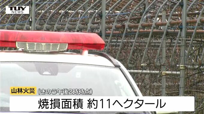 この火災は、おととい東根市大木沢の山林で発生したもので、きのう午後2時時点で11ヘクタールが焼けたことが確認されています。