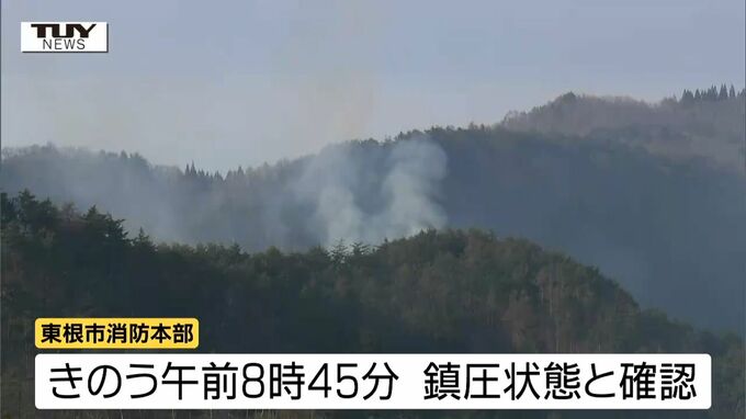 今月24日に発生し、きのう鎮圧状態となった東根市の山林火災について、消防は午後から山に入っての作業を進めていますが、(午後3時半時点で)今のところ「鎮火」の確認には至っていないということです。