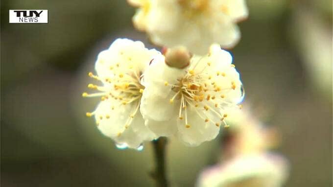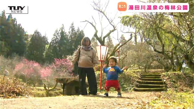 梅の名所、鶴岡市の湯田川温泉梅林公園の梅が見ごろを迎えています。
