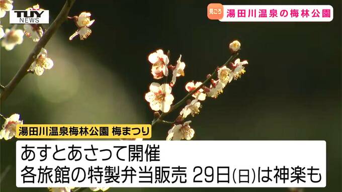 湯田川温泉梅林公園ではあすとあさって、梅まつりが開かれます。