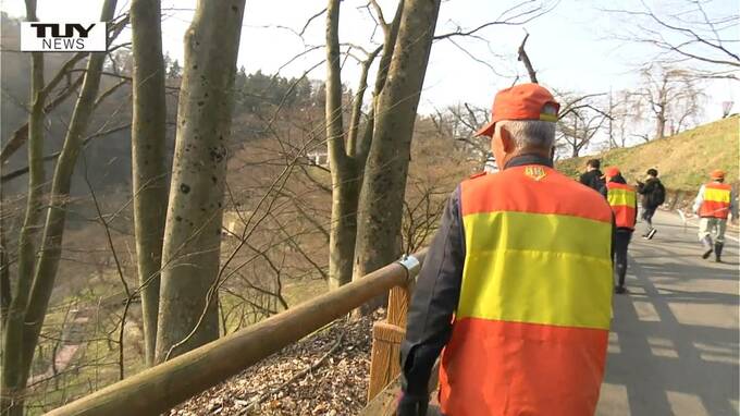 天童市では今年に入ってからクマの目撃はありませんが、安全対策としてきょう、地元の猟友会のメンバーや市の職員などが舞鶴山周辺を巡回しました。