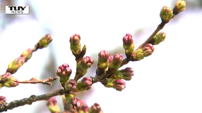 藤井響樹アナウンサー「こちらは酒田市の日和山公園です。桜を見てみますとまだ蕾の状態ですが蕾の先を見てみるとピンク色の花びらが顔を出しています。開花はまもなくのようです」