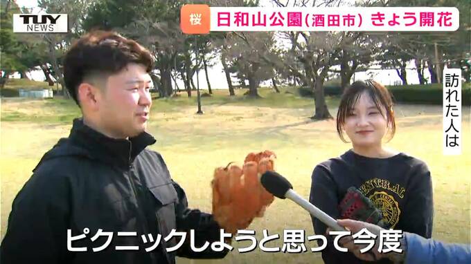 酒田市の日和山公園では取材後の午後3時ごろ、桜の開花が確認されました。