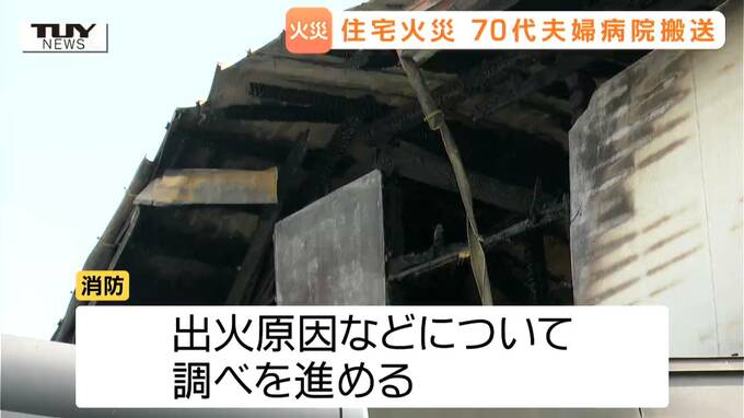 この火災で、男性と男性の妻の2人が病院に運ばれました。命に別状はないということです。消防が出火の原因などについて調べを進めています。