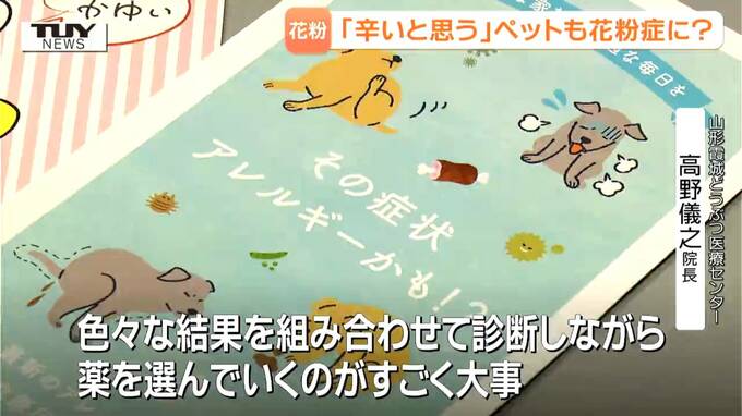 山形霞城どうぶつ医療センター 高野儀之 院長「花粉症単体で発症しているのか皮膚のバリア機能が弱ってしまってばい菌などが悪さをして皮膚の病気が出ているのかは(病院で検査をしないと)分からない。色々な結果を組み合わせて診断しながら薬を選んでいくのがすごく大事」
