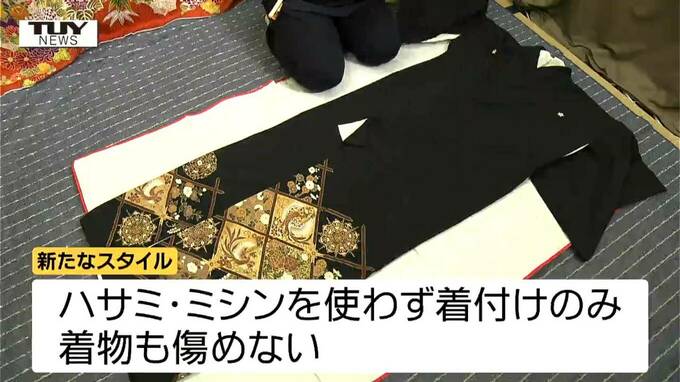 きんらんどんすの着付け師・佐藤さんが師匠から教わったという新たなスタイルは、ハサミやミシンを使わずに着付けのみで、着物も傷めないということです。