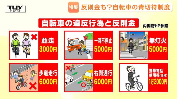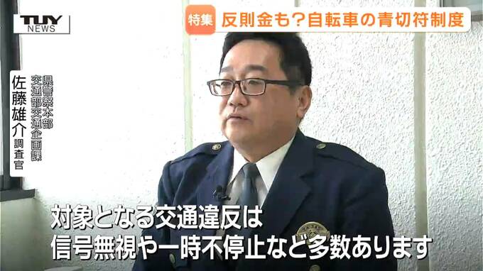 県警察本部 交通部交通企画課 佐藤雄介 調査官「自転車利用中に反則行為という比較的軽微な交通違反をした場合に自動車と同じように反則切符、いわゆる青切符を適用して処理される制度。対象となる交通違反は信号無視や一時不停止など多数あります」