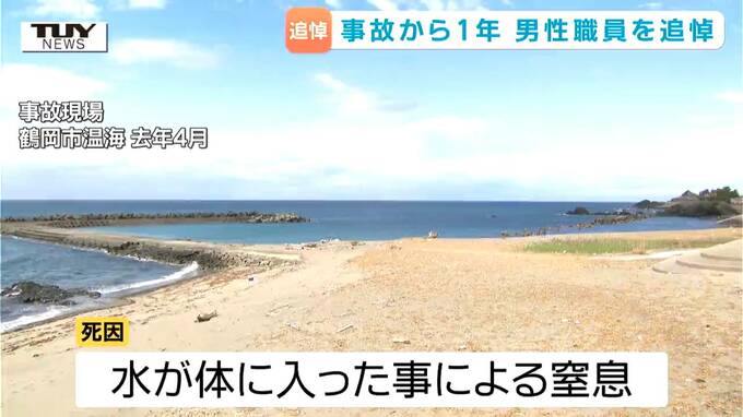 山形県鶴岡市で潜水調査を行っていた県水産研究所の男性職員が死亡した事故からきょうで1年です。きょう現地では追悼式が行われました。