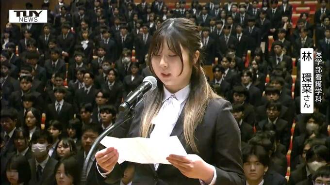 これに新入生を代表して医学部看護科の林環菜さんが、「豊かな人間性を養い、学問文化の向上につとめる」などと誓いの言葉を述べました。