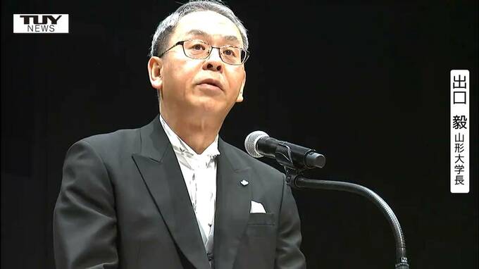 山形大学 出口毅 学長「私がちょうど40年前に大学を卒業したことを思うと、皆さん一人一人の中に、まるで未来からの使者のような役割を感じています。大学では、どうか恐れずに学び、迷い、問い、そして地域や世界で行動してください」