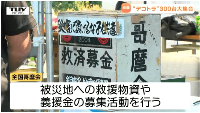 このイベントは、トラック愛好者からなる団体、全国哥麿(うたまろ)会が、去年7月の豪雨被災地の支援を呼びかけようと行ったもので、会場には募金箱が設置されました。