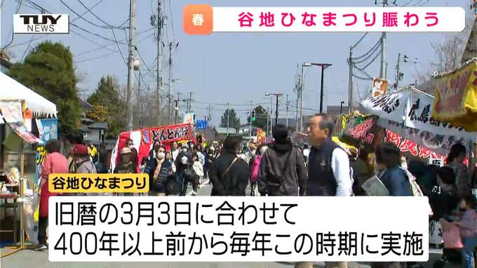 山形県河北町の春の恒例行事「谷地ひなまつり」が開かれ、大勢の人でにぎわいました。