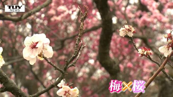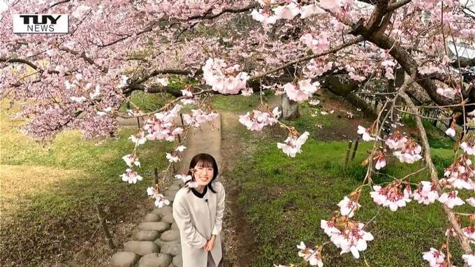 佐藤友美アナウンサー「梅と桜の両方が咲いていますね。よーく見てみると、花びらの枚数や色の濃さが違いますね。桜と梅どちらも楽しめそうです」