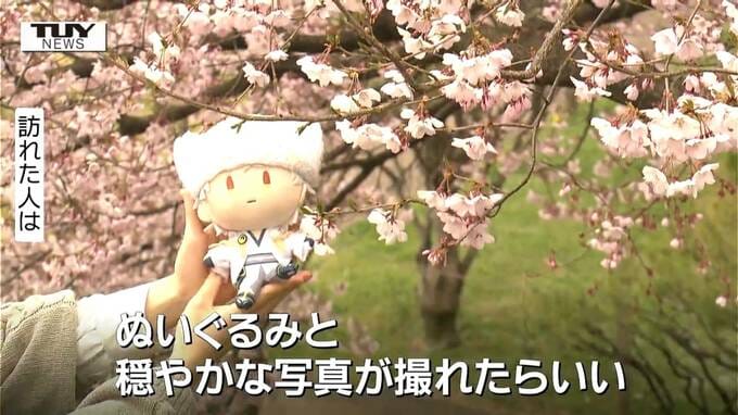 訪れた人は「桜と一緒に自分の好きなキャラクターと写真撮れたら素敵だなと思って。きょうは桜と一緒に写真を撮りに来た。(撮りたいのは)かわいい写真。ぬいぐるみと穏やかな写真が撮れたらいい」