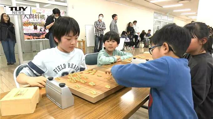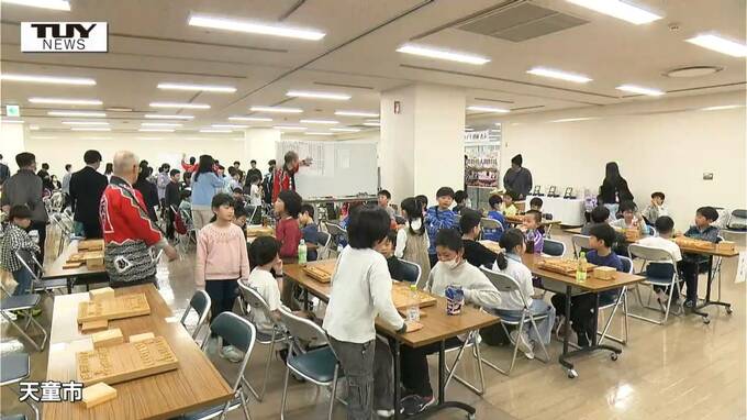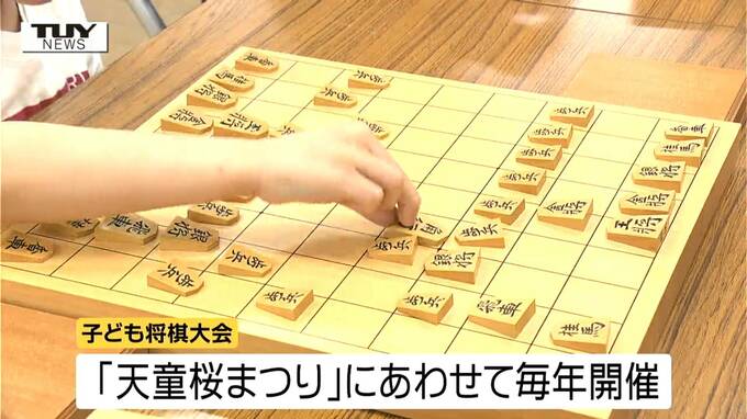 天童市の桜が間もなく見頃を迎える中、「天童桜まつり」の開催を告げる毎年恒例の子ども将棋大会が、きょう開かれました。