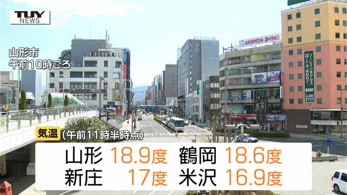 午前11時半時点の気温は、山形18.9度、鶴岡18.6度、新庄17度、米沢16.9度など午前中から気温が上がっています。